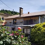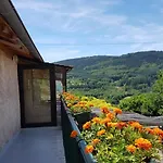 Situé à 3 km de l'Horloge à eau à billes, cet établissement Gîte Le Tilleul avec cheminée, terrasse et animaux admis - FR-1-489-470 Laprugne offre une terrasse avec une vue sur les montagnes.